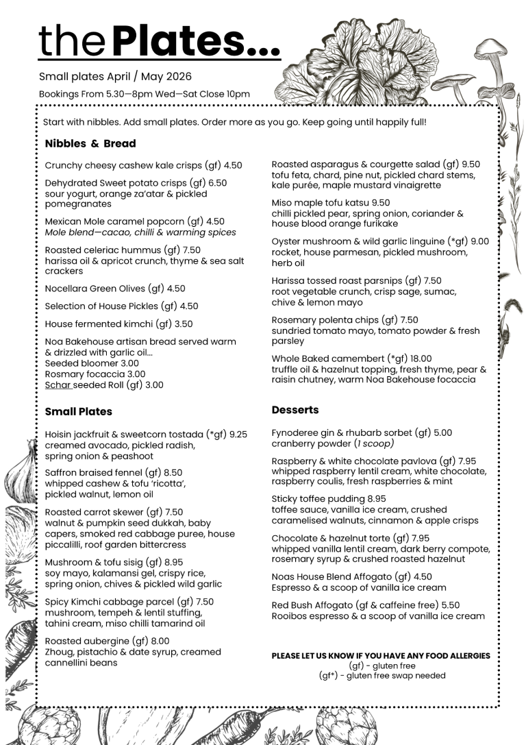 Evenings at VIBE are a relaxed affair as we transform from daytime café to restaurant. Flickers of candle light, trendy playlists, and a small plates menu of delicious seasonal dishes.
